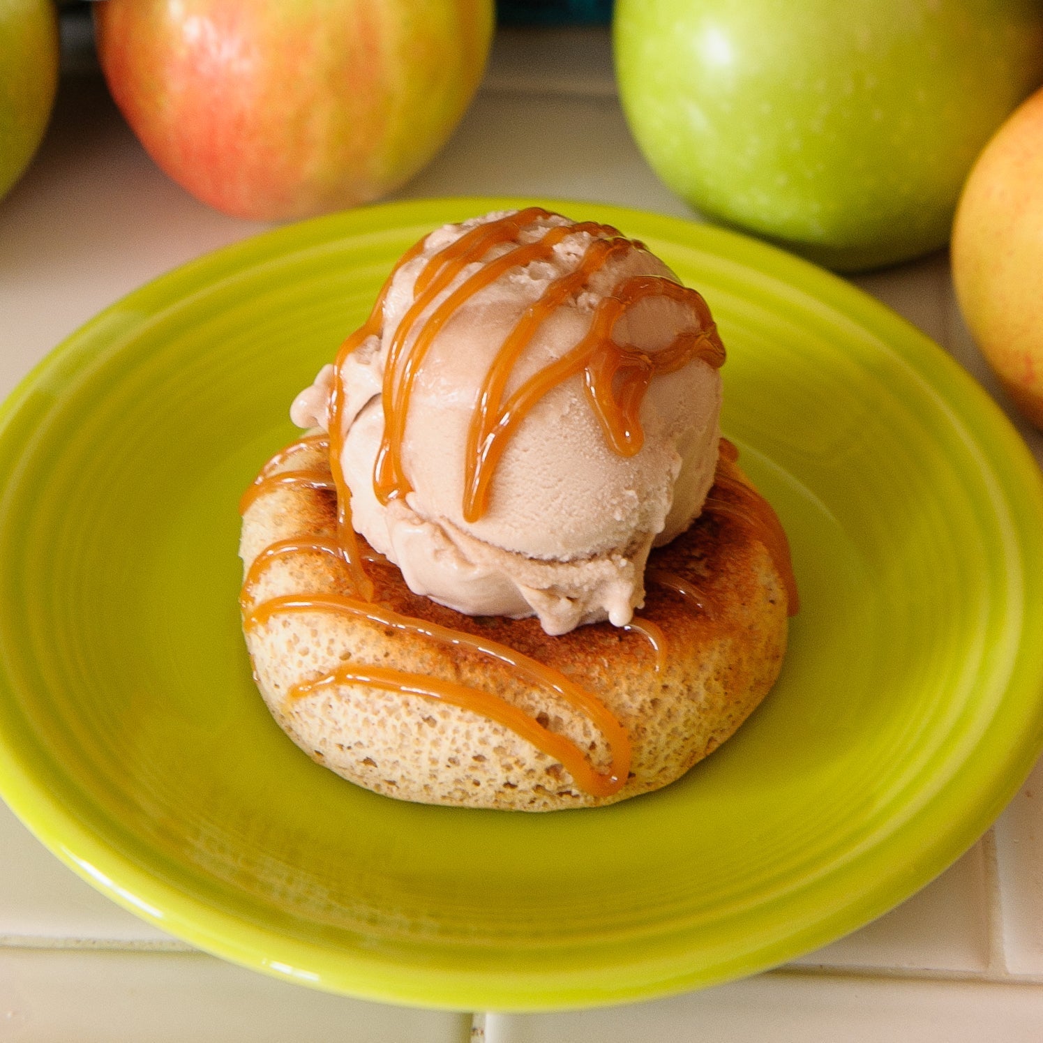- Caramel drizzle, ice cream, chopped nuts if desired