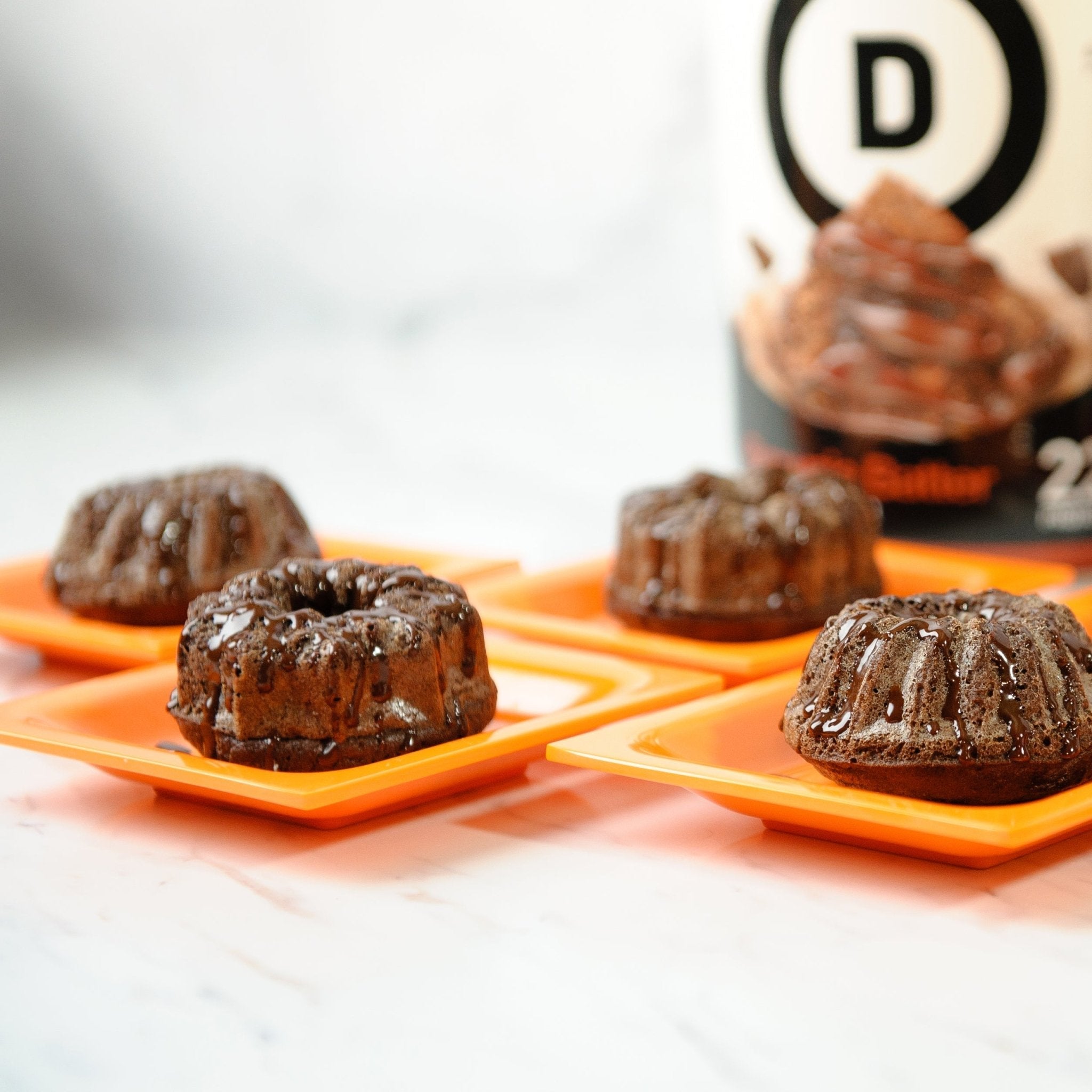 Preheat conventional oven to 375F and spray your muffin pan, or silicone mold. Mix all the dry ingredients together first, then add your wet to dry. Mix well and equally divide into 6 muffin cavities. Bake 18-20 minutes. Remove from oven and cool.