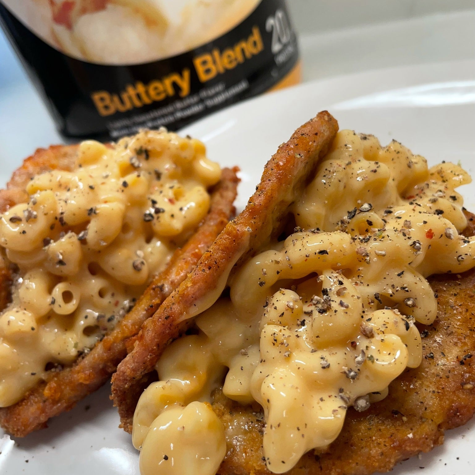 Buttery Blend Mac & Cheese Stuffed Chicken Taco Shells