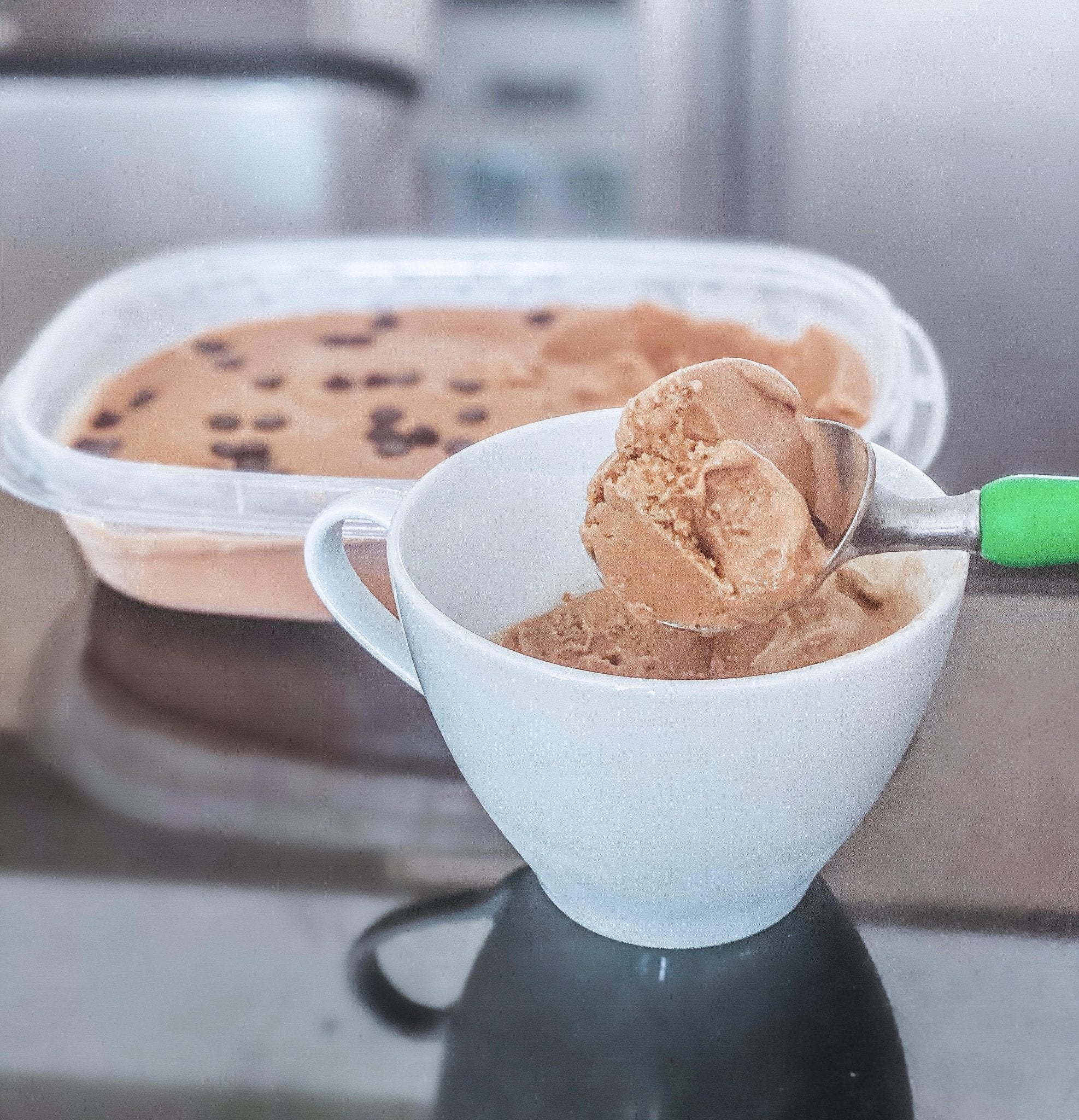 3) Mix in chocolate chips and freezer in a freezer safe container for several hours. Defrost for 2-3 minutes before enjoying!