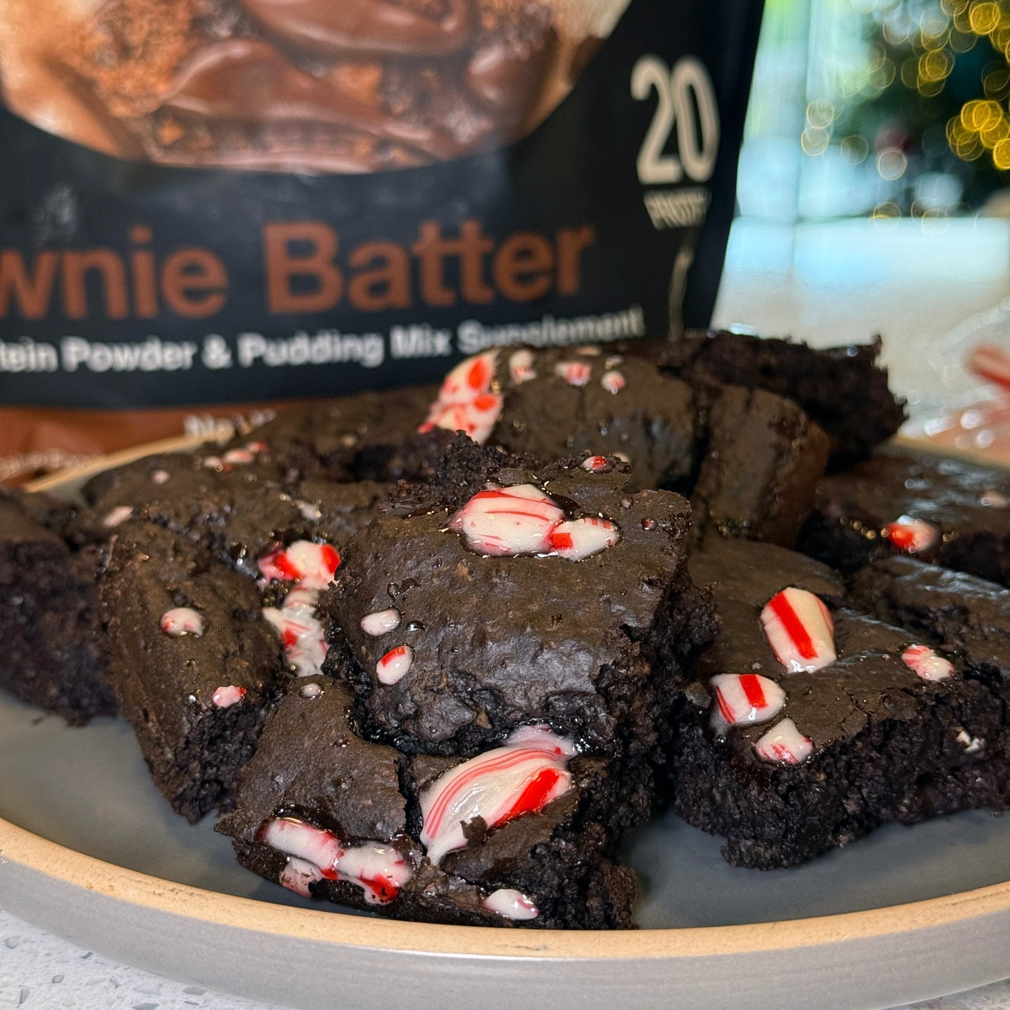 3. Pour batter into pan and spread evenly. Top with white chocolate chips and candy cane pieces. Bake for about 25-30 minutes. Leave them slightly underdone if you like a gooey brownie.
