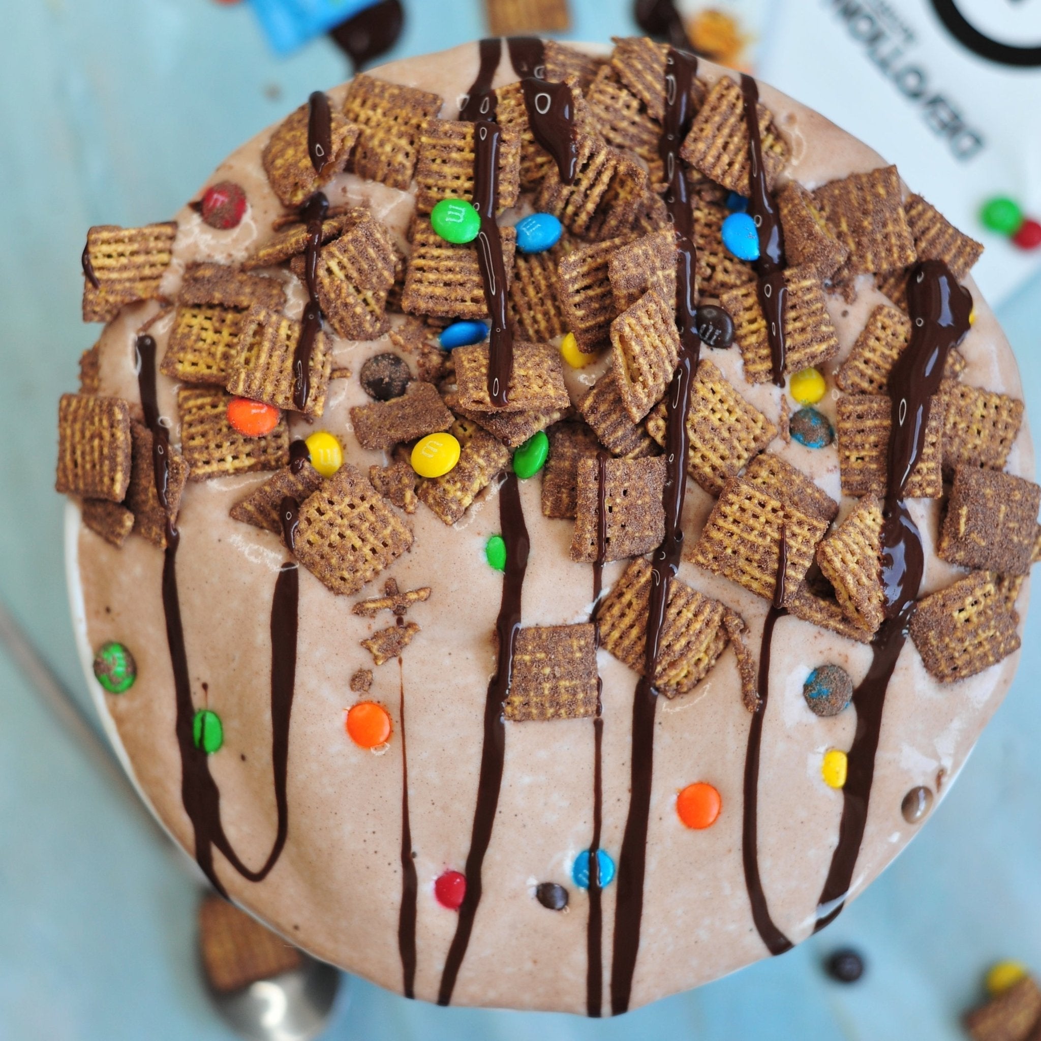 Optional: Top with our Protein Puppy Chow, mini M&Ms and Sugar Free Chocolate Syrup!