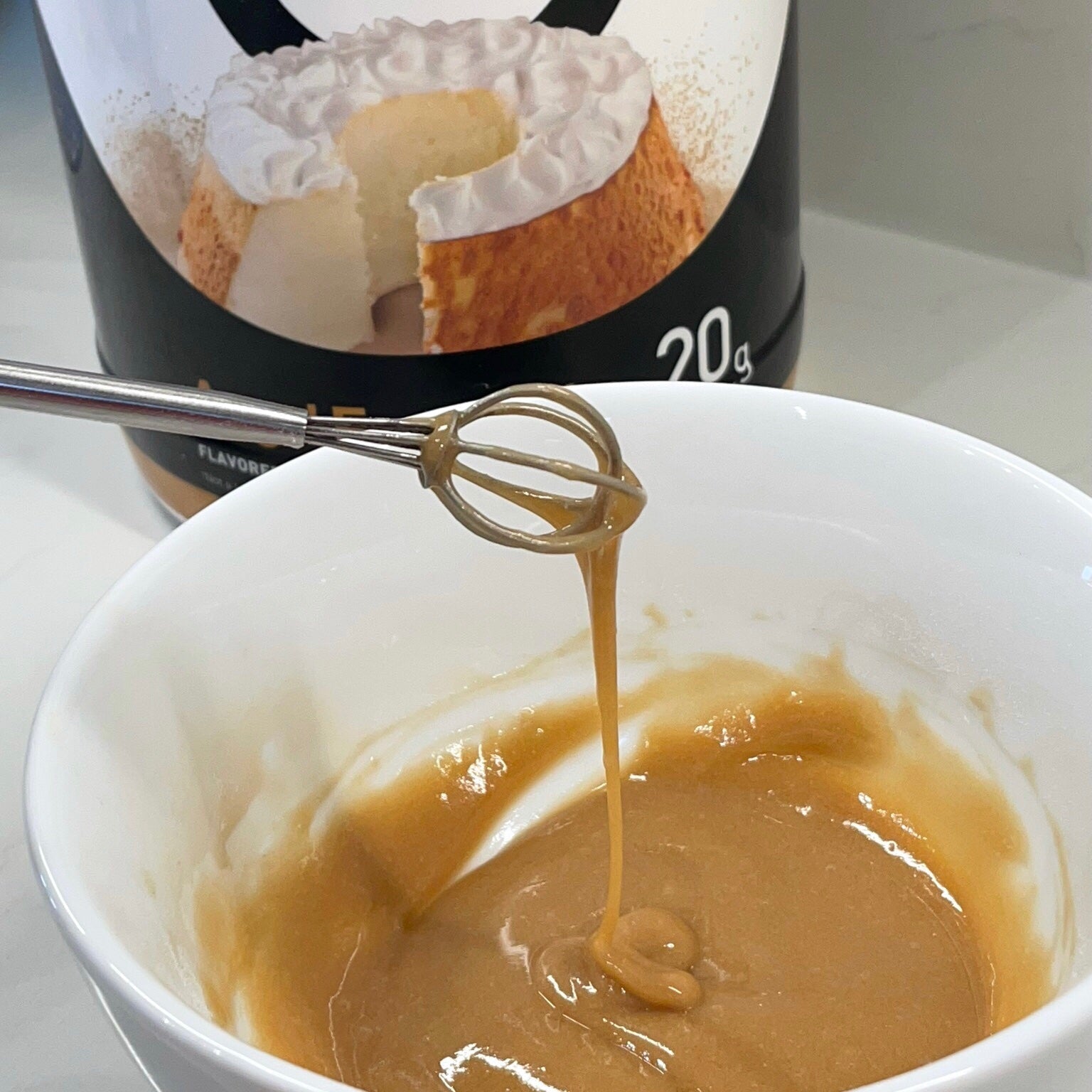 2. Remove from microwave and mix together then slowly add the angel food cake protein powder until well combined.