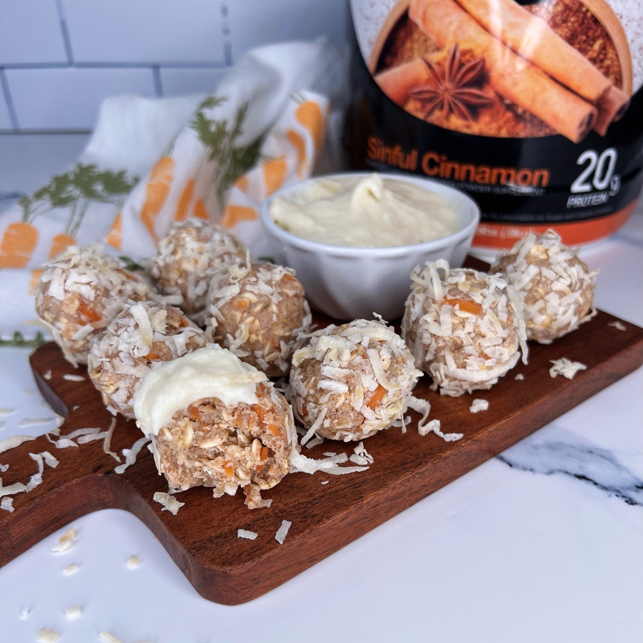 Protein Carrot Cake Balls & Cream Cheese Dip