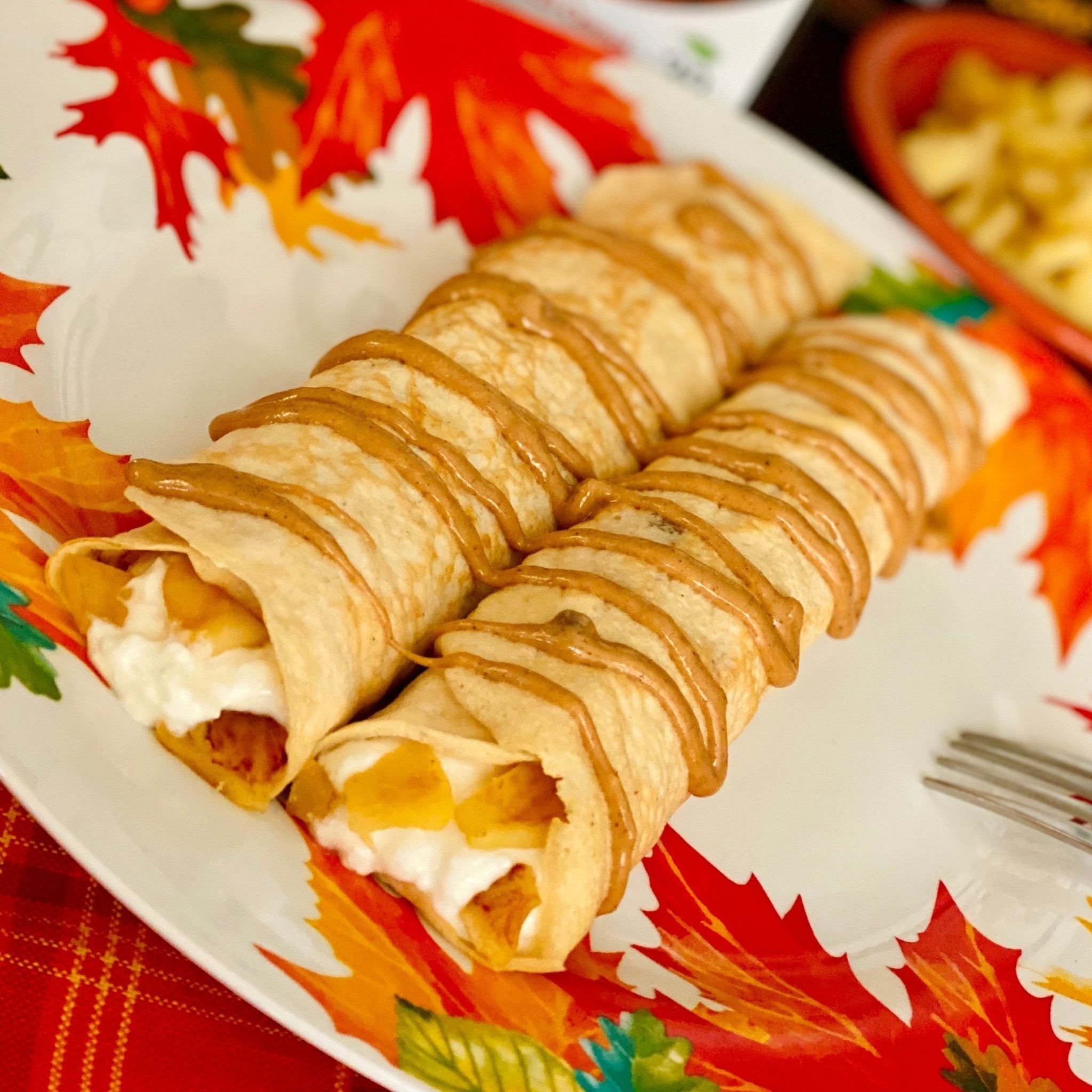In a shaker cup, measure and shake the crepe batter ingredients until well-blended. Heat skillet and apply non-stick spray or oil. Pour 1/4-1/3 cup batter onto hot skillet and tilt pan to spread batter very thin. Let cook until edges start to curl slightly and crepe is almost cooked through. Gently turn with a spatula and finish cooking. Transfer to plate (or cooling rack if making ahead) and repeat until all batter is used.