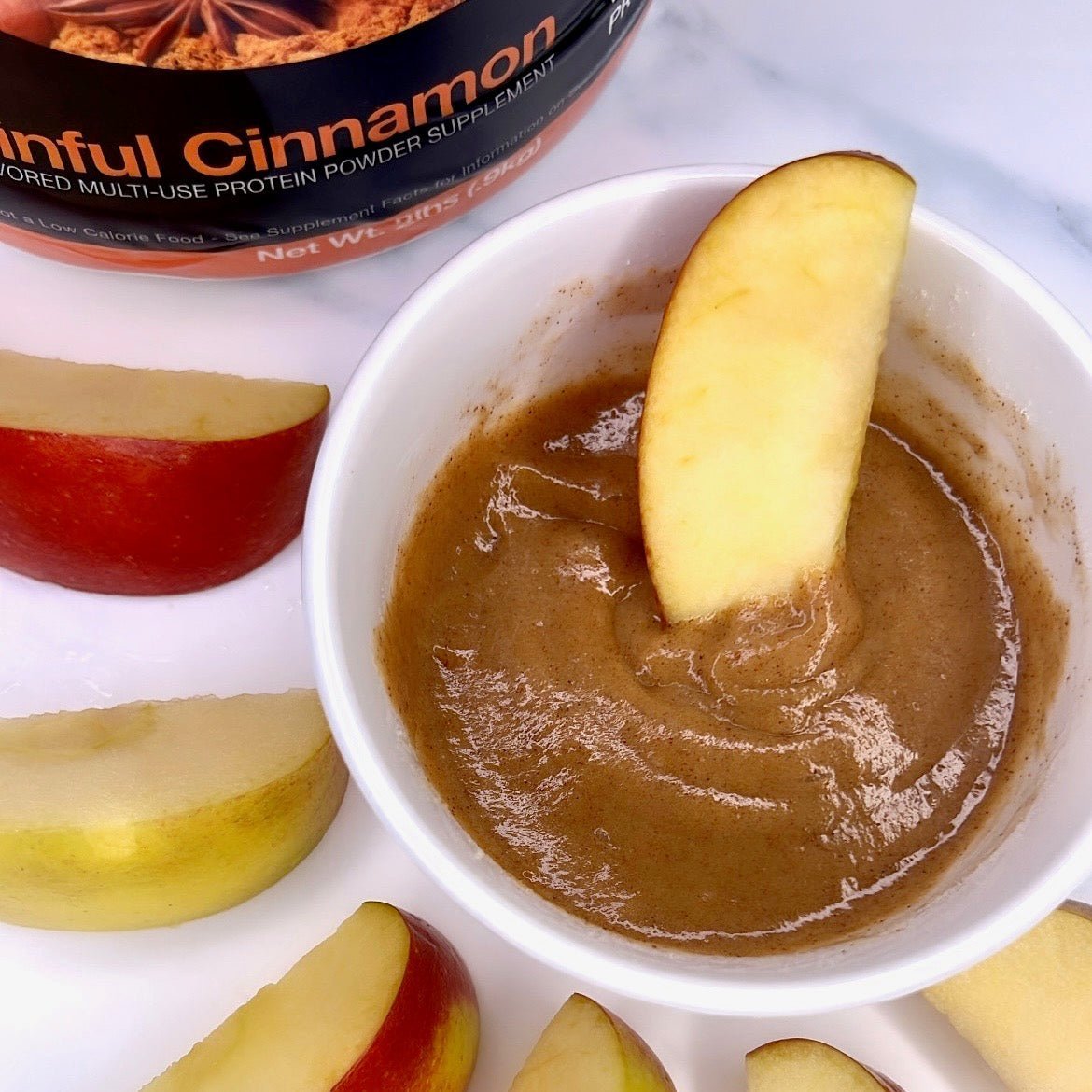 Add dry ingredients to a small bowl and add water slowly to desired consistency. Dip apple slices or other fruits, spread on a rice cake or protein bagel and enjoy!