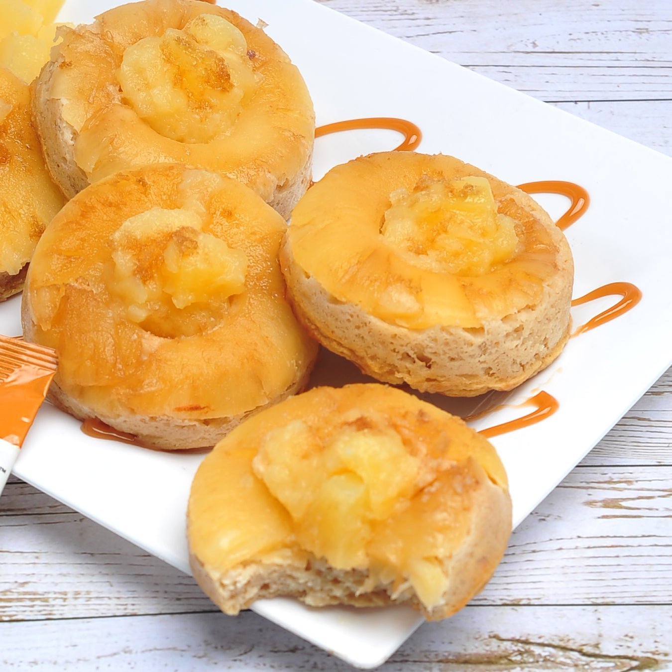 For pans with smaller donut wells, pineapple rings may need to have sections removed to fit and baking time will be reduced. If using a metal non-stick pan, reduce baking temperature to 325 and increase baking time accordingly.