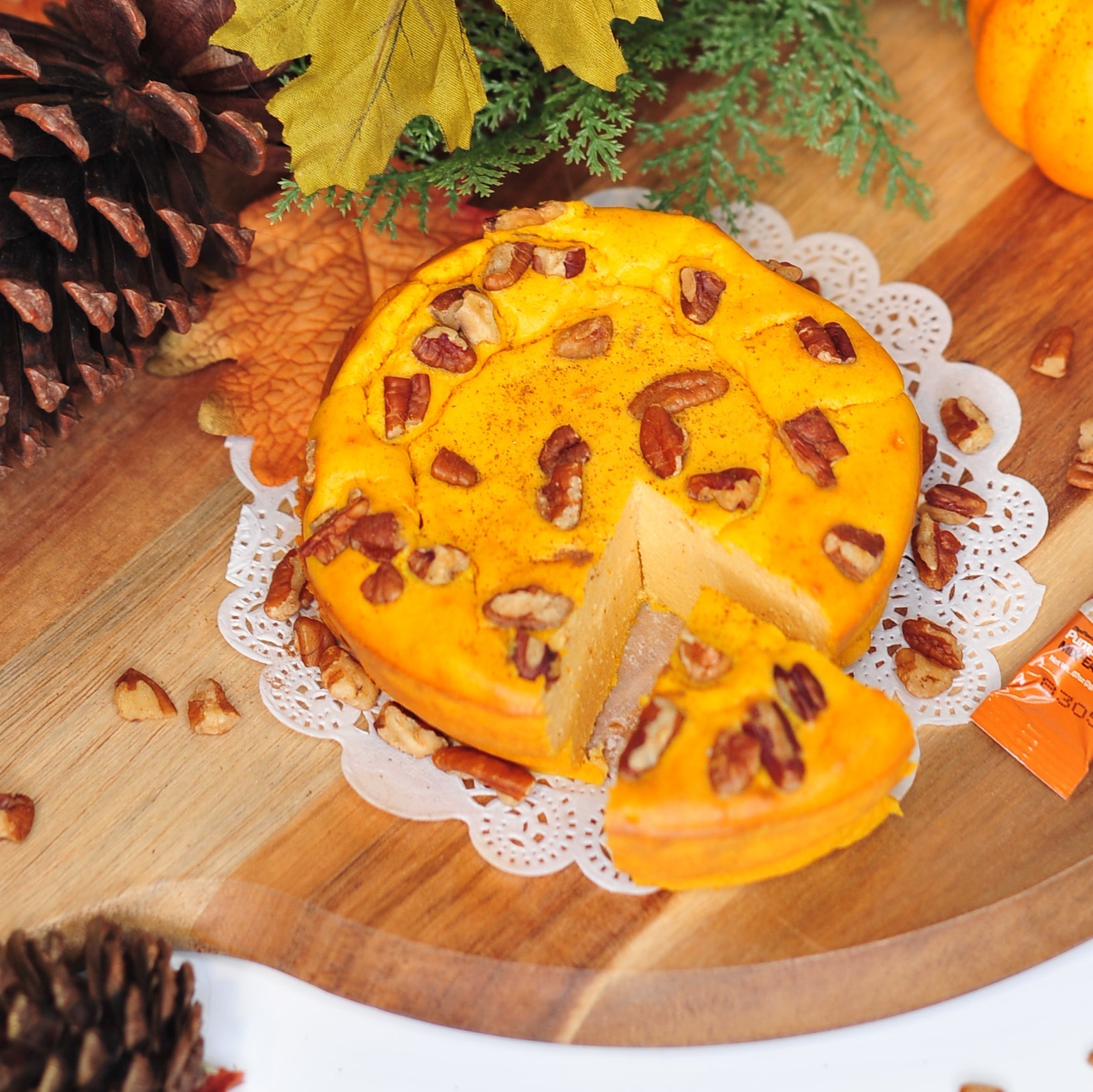 Spray 2-4" mini springform pans with cooking spray and fill. Place in preheated oven for 30 minutes. Remove from oven to cool. Top with optional nuts or sugar free whip and enjoy!