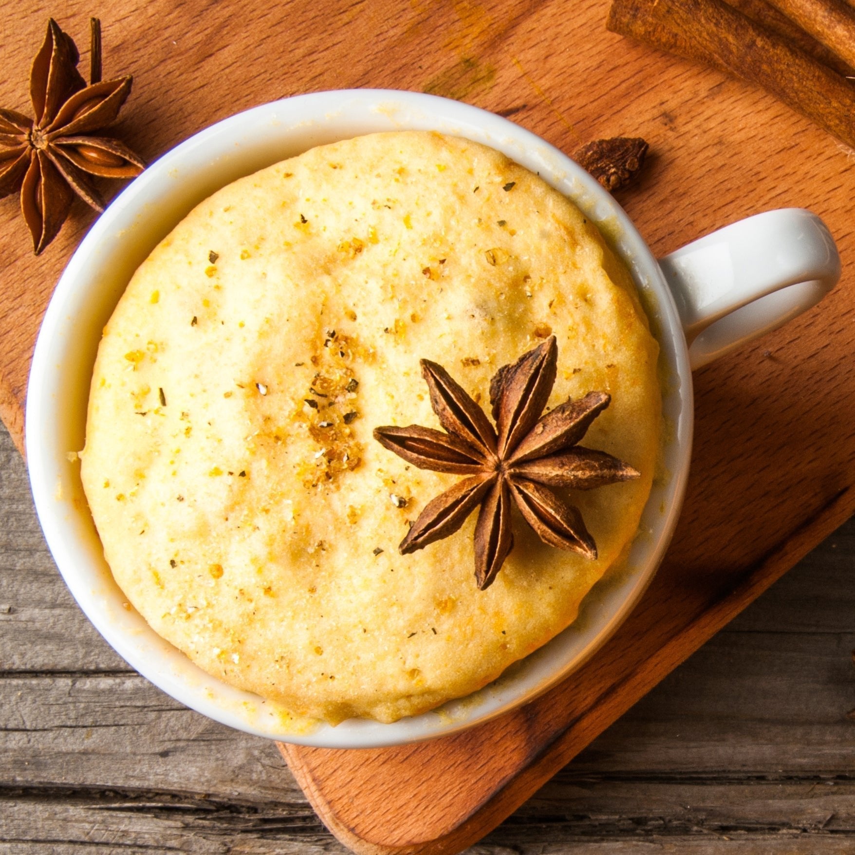 Spray a large microwave-safe mug with non-stick spray and set aside. Combine all ingredients in a bowl and whisk until well blended. Transfer ingredients into mug and microwave for 45-50 seconds. Allow to cool for a few minutes, add toppings, and enjoy it right out of the mug!