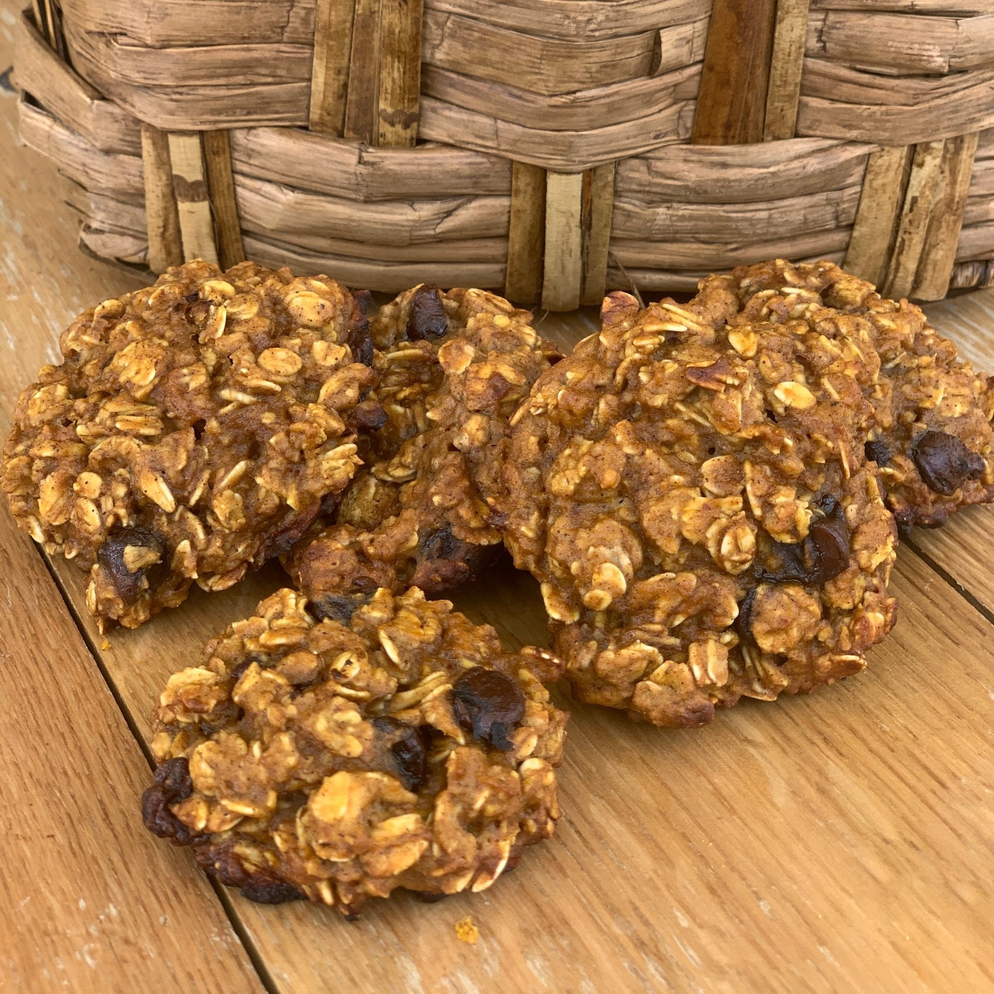 Mix all ingredients together in a mixing bowl. If too wet, add extra protein powder or more oatmeal. Form into balls and place on a greased baking sheet. Gently press.