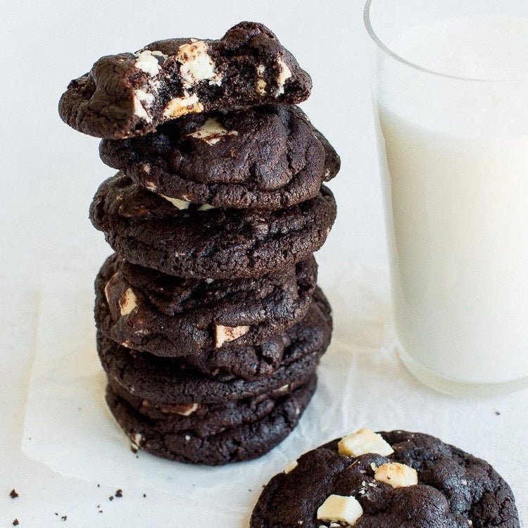 Macros per cookie: Cal 65 // Fat: 2.5g // Sat Fat: 1.3g // Carbs: 7g // Fiber: 2g // Pro: 7.2g // Sugar: 0g