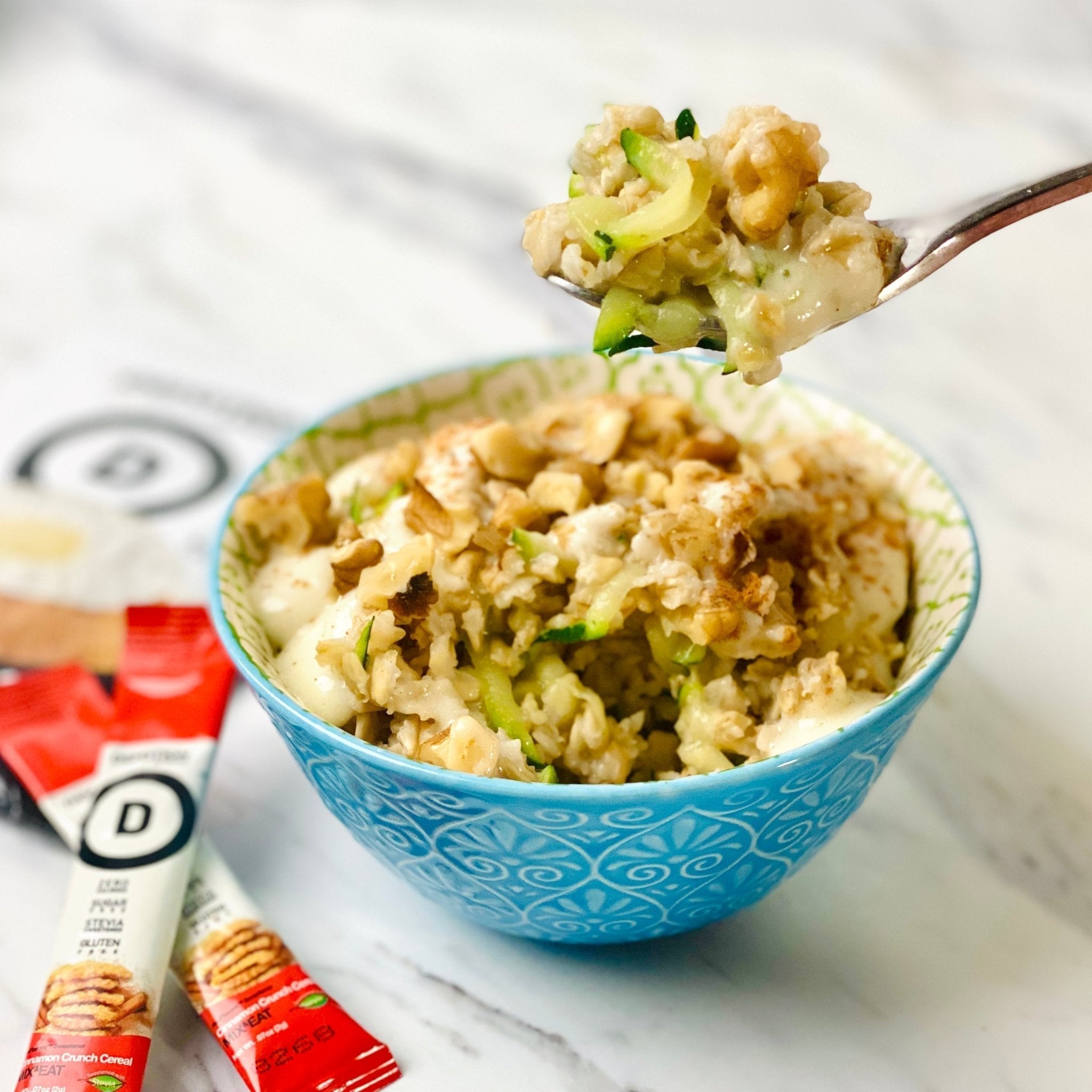 In a microwavable bowl, mix oats, zucchini and water, cover and microwave for 2 minutes and allow to stand for 2 minutes. Stir in cinnamon.