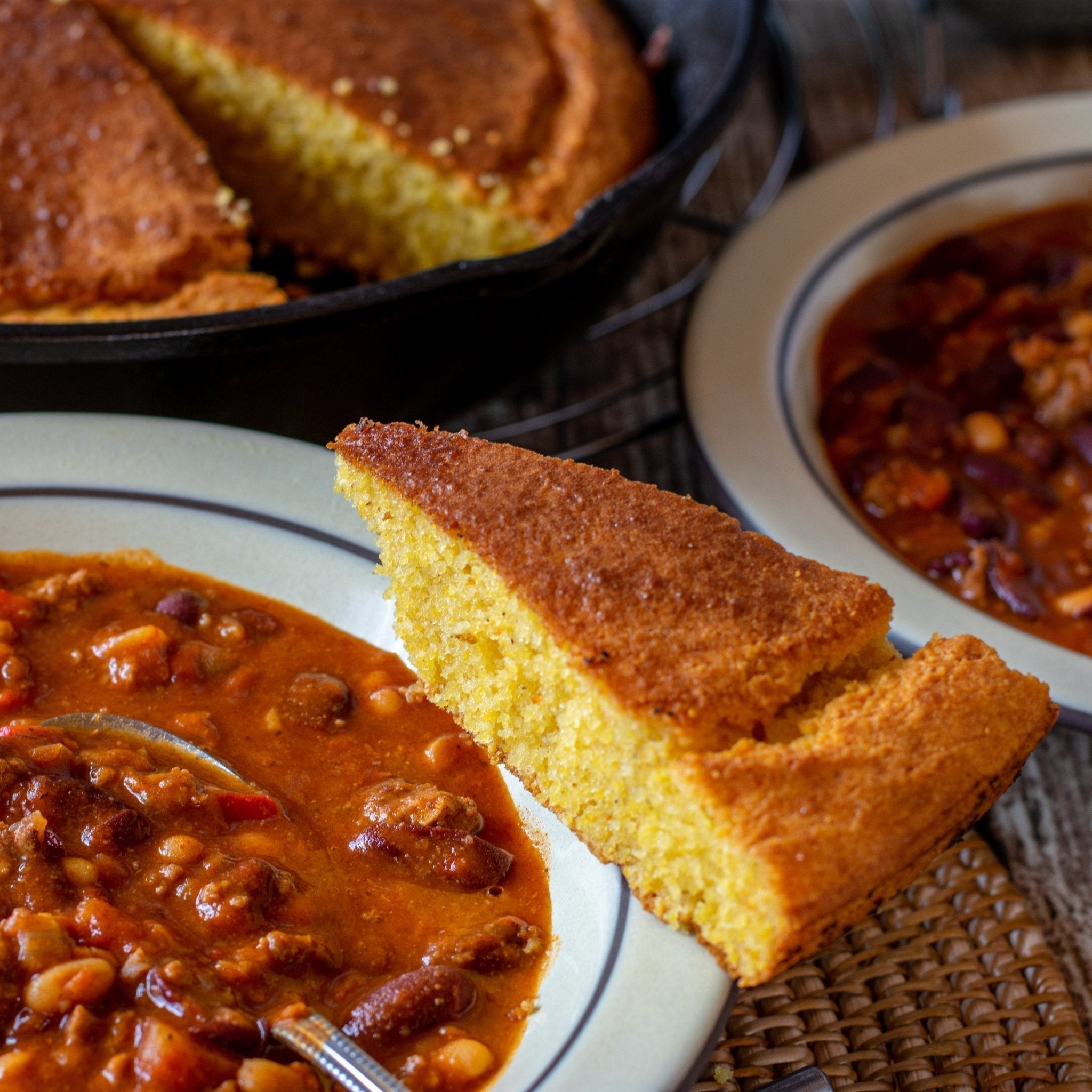For an easy way to try the protein, check out the buttery blend powder sample pack.Place cast iron skillet into an oven and preheat to 375°F. Combine cornmeal and milk in a bowl and let sit for 30 mins while you combine the flour, protein powder, baking powder, baking soda, salt, and Swerve. In another bowl, mix together the melted butter, honey, applesauce, and eggs. After the cornmeal has soaked, combine with the wet ingredients and mix thoroughly. Add the dry ingredients and mix until just combined. Carefully remove cast iron skillet from the oven & pour batter into skillet and return to oven. Bake for 30 mins. Let cool for 10 minutes before slicing into 16 slices. (note: it tastes even better the next day! toast in an air fryer before serving to make it extra amazing)
